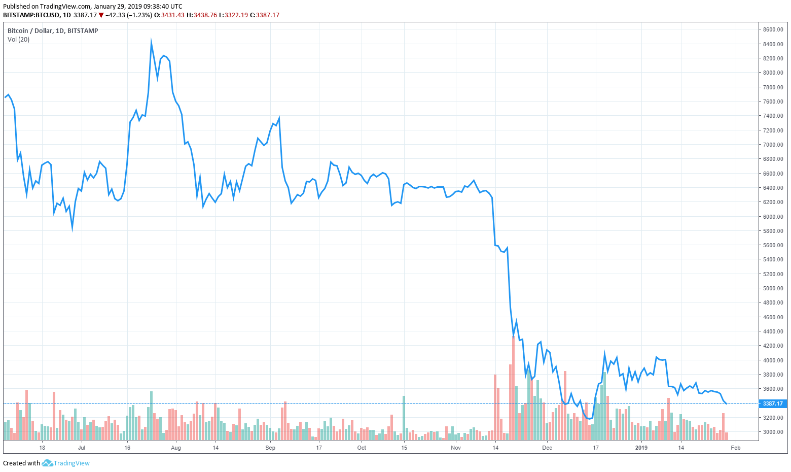 18 Ocak’tan bu yana, Bitcoin ve diğer ana kripto paralar, zayıf bir kısa vadeli fiyat hareketi gösteriyor. BTC, 12 ayın en düşük seviyesi olan 3,122 $’a doğru düşmeye devam ediyor, ancak 3,000 $’dan daha düşük değerdeki satın alma çeperinin varlığın toparlanmasına yol açması için yeterli olup olmayacağı konusu ise belirsizliğini koruyor.